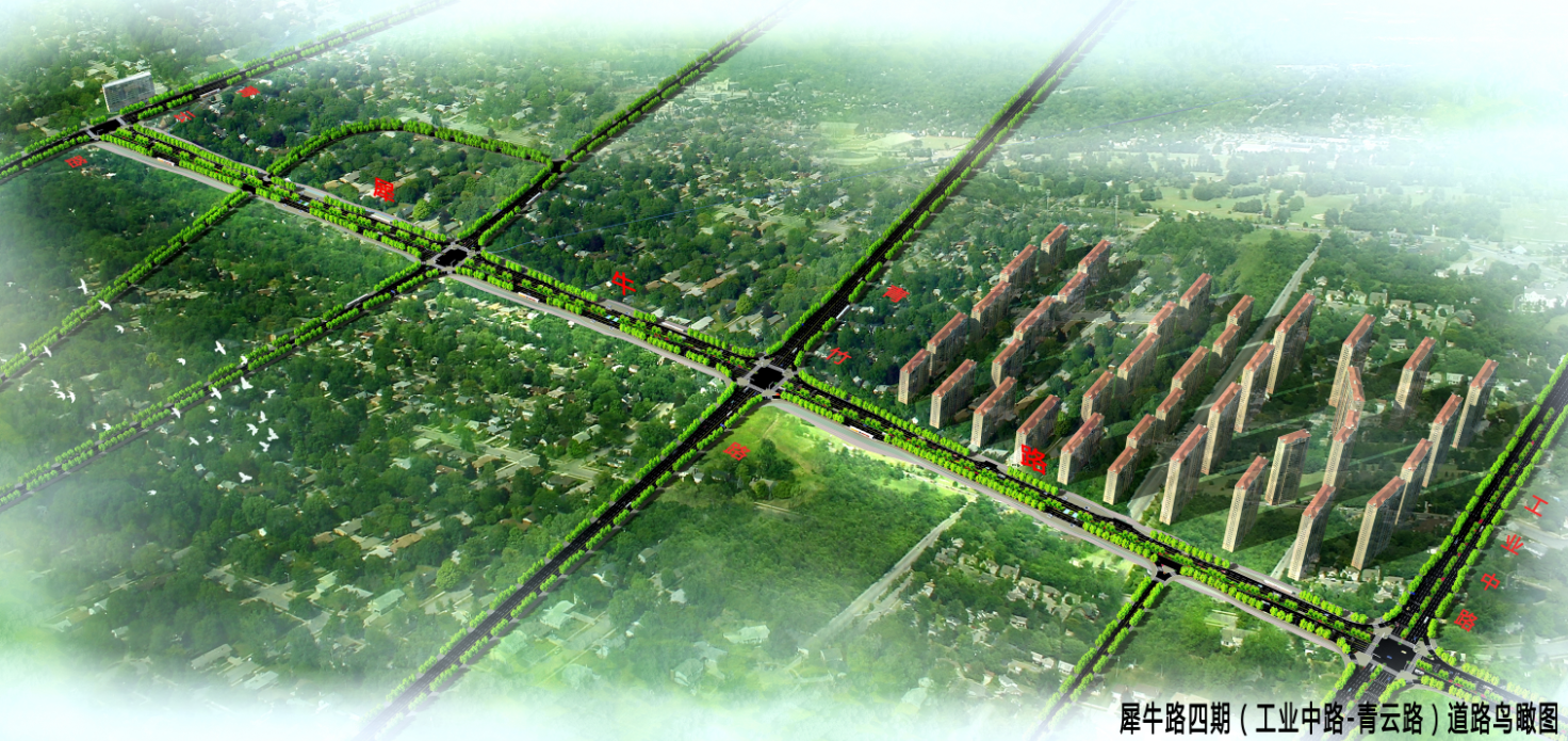 犀牛路四期道路工程起于工業中路,終于青云路,