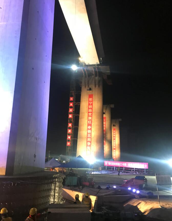 11日晚22:00,現(xiàn)場(chǎng)總指揮一聲令下轉(zhuǎn)體開(kāi)始,T構(gòu)按照1°/分鐘的速度勻速轉(zhuǎn)動(dòng),轉(zhuǎn)體行程剩余30cm時(shí),橋上觀測(cè)人員先對(duì)橋梁的水平標(biāo)高進(jìn)行觀測(cè),通知下方人員進(jìn)行水平調(diào)整,再對(duì)中線(xiàn)觀測(cè),最后的30cm采用點(diǎn)動(dòng),避免過(guò)轉(zhuǎn)確保中軸線(xiàn)誤差不超過(guò)設(shè)計(jì)要求,橋身轉(zhuǎn)體實(shí)現(xiàn)“華麗轉(zhuǎn)身”,共歷時(shí)約70分。